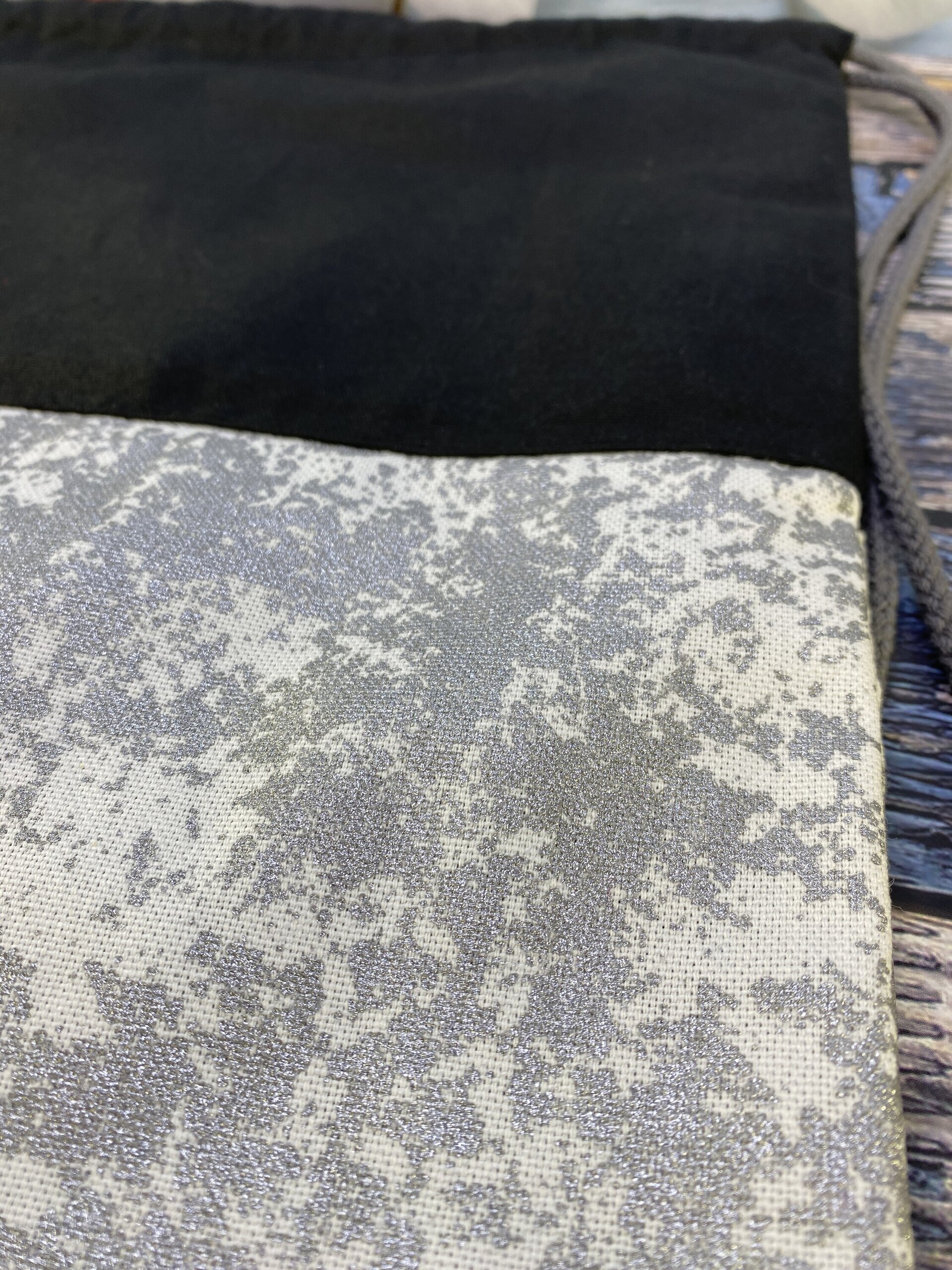 Mochila de cordón, hecha con tela de algodón y con forro interior.